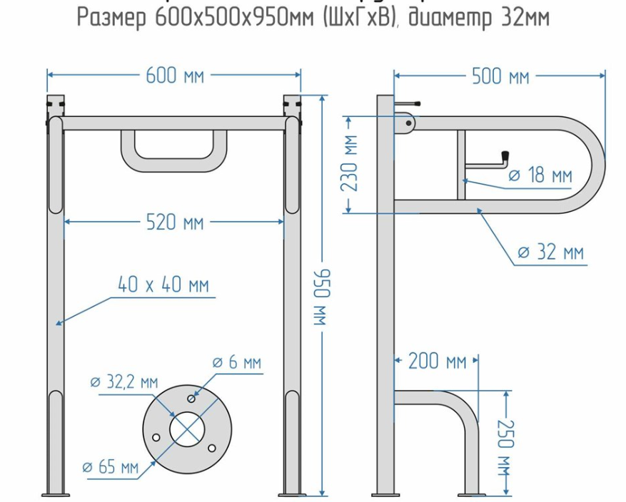 | Назначение поручней | для унитаза (все модели), для унитаза длиной 600мм, высотой 450мм |