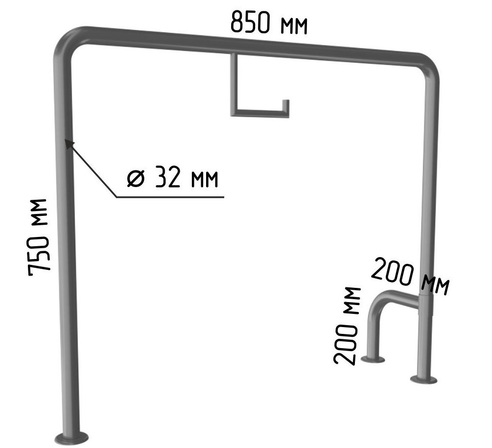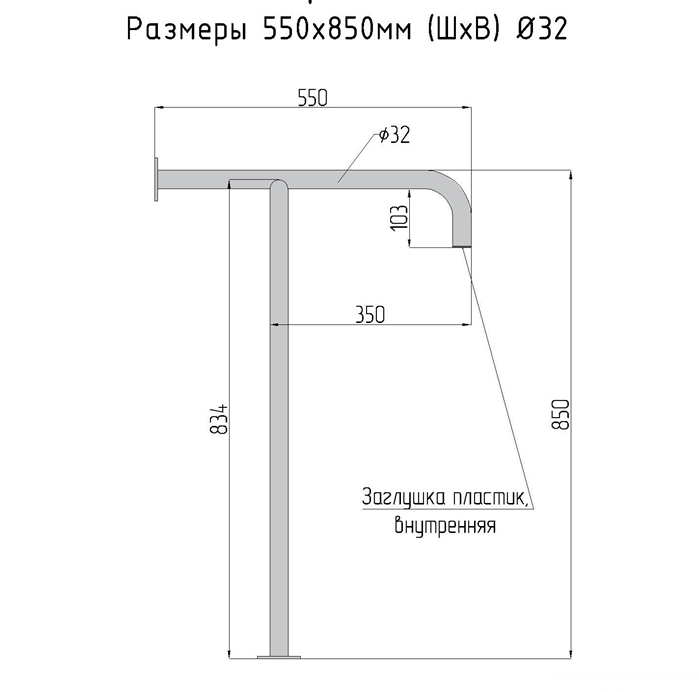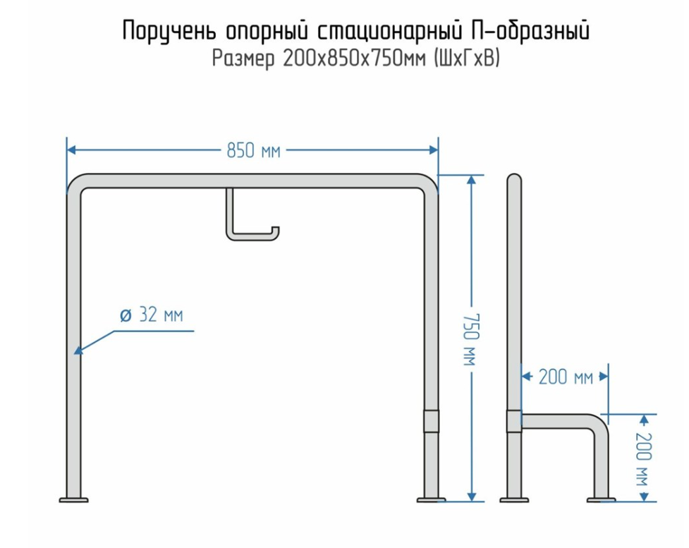 Стационарный П-образный поручень предназначен для обеспечения надёжной опоры в ванной комнате или санузле. Его ключевая особенность — полное напольное исполнение, что делает изделие идеальным для помещений, где невозможно крепление к стенам (например, при остеклении, тонких перегородках или облицовке хрупкими материалами).