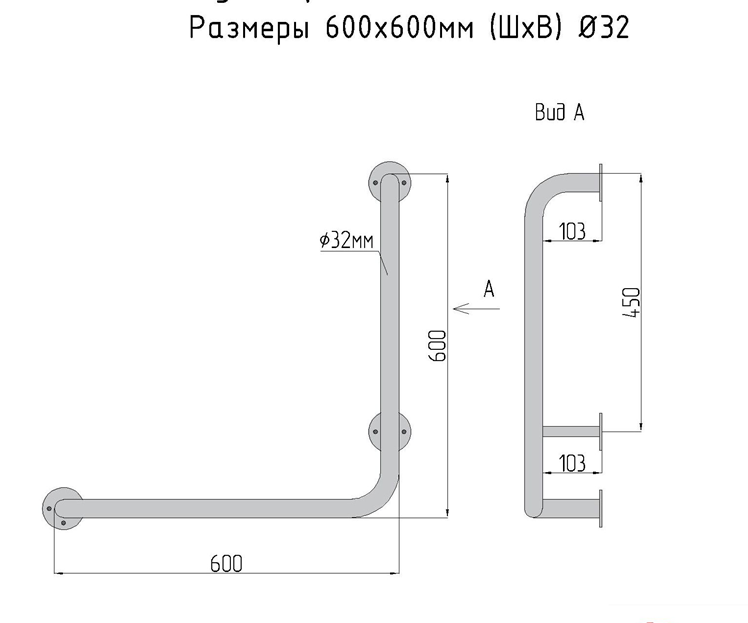 Поручень к унитазу настенный стационарный Г-образный 600х600 мм, белый