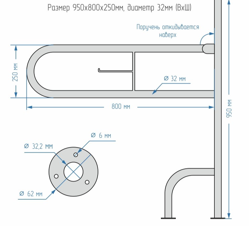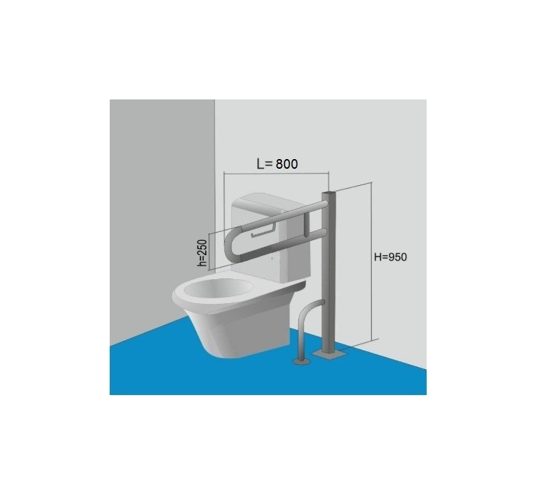 Поручень откидной (с бумагодержателем) обеспечивает максимальный комфорт для людей-инвалидов с ограничением физической активности. Опора имеет достаточное количество креплений для обеспечения безопасности и надежности. Поручень предпочтительно устанавливается в небольшом туалете, где нет много места для громоздких конструкций.