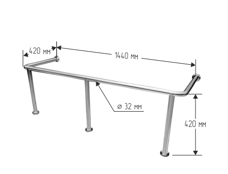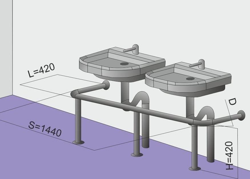 Защитное ограждение слива двух раковин позволяет надежно защитить слив от возможного повреждения со стороны человека с ограничением физических возможностей. Изделие выполнено из качественной нержавеющей стали, к тому же оно абсолютно безопасно для пользователя. Конструкция имеет 4 опоры, которые позволяют надежно прикрепить изделие к полу и стене.